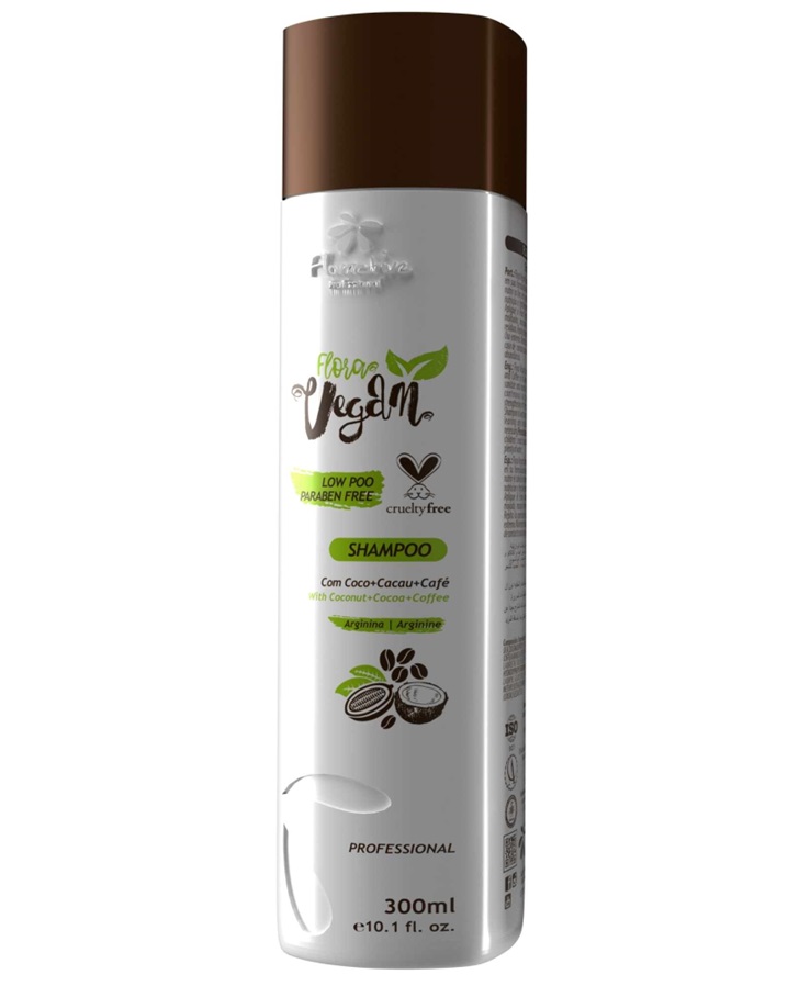 A Linha Flora Vegan reuniu o que há de melhor na flora brasileira a fim de oferecer um tratamento eficaz, utilizando nutrientes poderosos como coco, cacau e café, ricos em vitaminas A, B2, E, K, ferro e potássio que auxiliam no crescimento, produzem hidratação profunda, brilho intenso, maciez, rejuvenescimento dos fios, garantindo cabelos naturalmente lisos. Rico em Arginina, esse aminoácido potente garante força e resistência a fibra capilar.